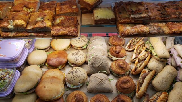 Notre offre de petite restauration salée à emporter ou à consommer sur place s’adapte aux envies et disponibilités des saisons : salades, sandwichs, pizzas et quiches, plats chauds et soupe… Nous essayons là-aussi de satisfaire un maximum de régimes alimentaires avec du carné, végétarien, vegan et sans gluten.