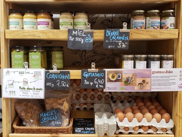 L’équipe oeuvre pour offrir en vente directe une large gamme de produits biologiques abordables : pains, pâtisseries, viennoiseries, nombreux biscuits bien sûr… ainsi que de la petite restauration salée.